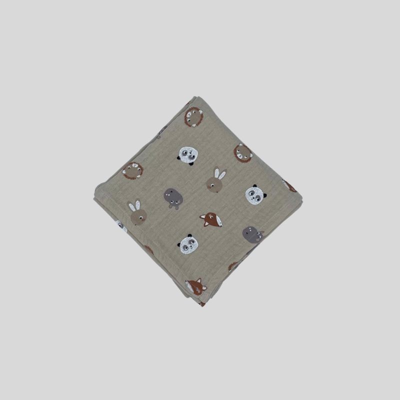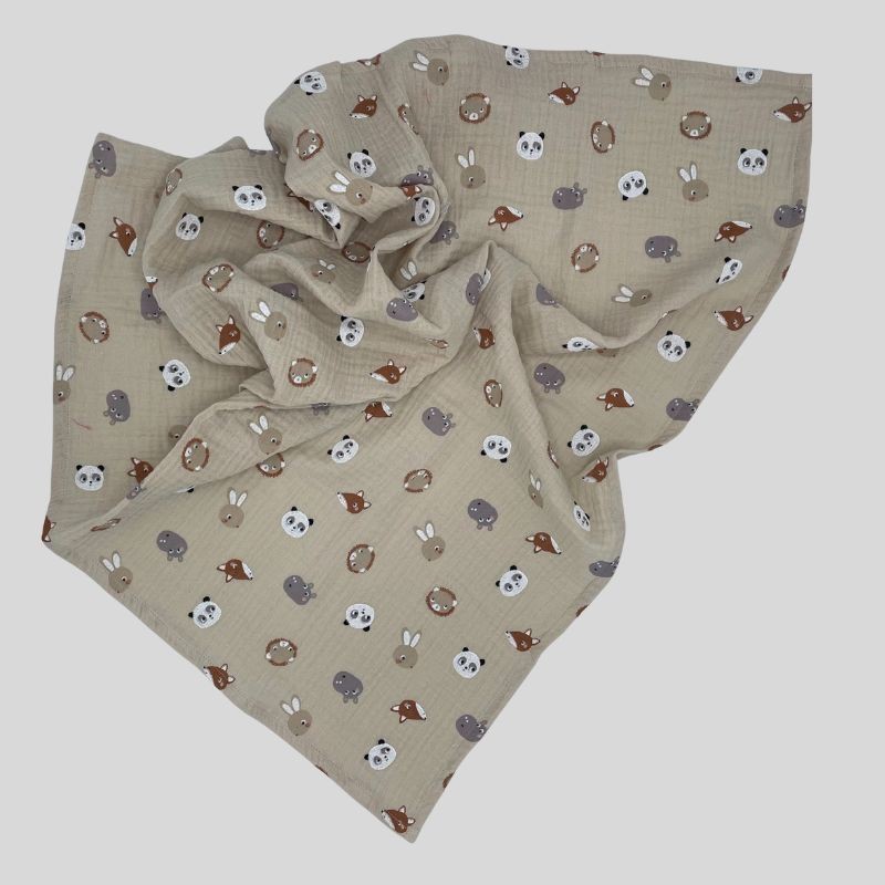 Lange en double gaze de coton imprimé de jolies petites têtes d'animaux