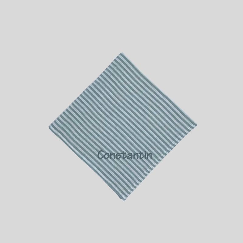 Personnalisable par la broderie d'un prénom en lettres anglaises ou en Desgner dans le coloris de la rayure la plus foncée.