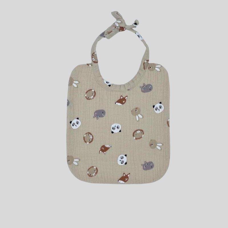 Bavoir en double gaze de coton imprimé de jolies petites têtes d'animaux (Tissu 100% coton certifié Oeko-Tex)